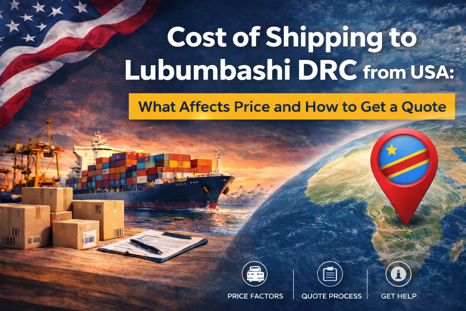 Understand the factors that determine the cost of shipping to Lubumbashi DRC from the USA, typical transit times for ocean freight, and how to get an accurate AmeZam quote.