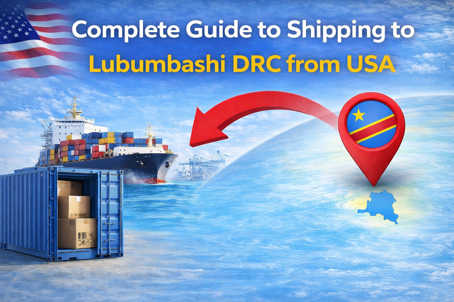 Comprehensive guide to ocean freight shipping from the USA to Lubumbashi, DRC — transit times, container options, documentation, and practical tips from AmeZam.